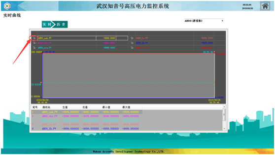 实时曲线按区域划分子项,点击进入之后,一般根据曲线表格右上方的选择框内选择需要查询的回路,即可显示所选对象的实时数据。曲线下端是数据分析,查看时需要将表格上拉。