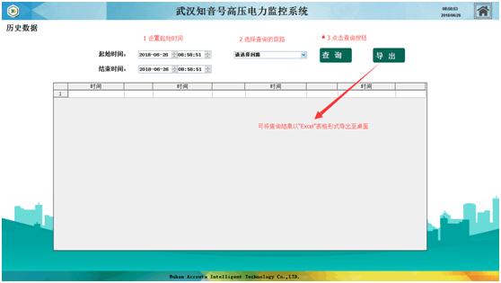 历史查询是通过设置查询时间,选择需要查询的回路,可以将时间段内该回路的数据查询出来。以table表、按接线回路方式呈现,清晰、直观的监测仪表完整显示系统设备的某一时间段监测信息,历史信息。