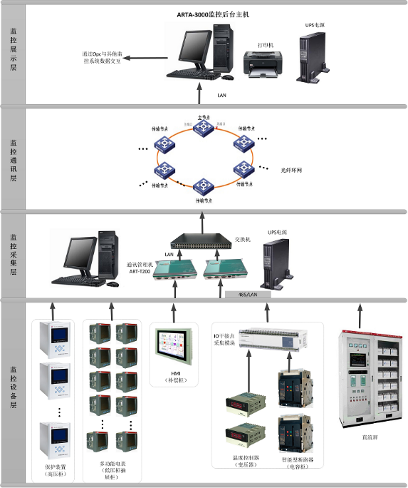 监控通讯层的主要功能是实现数据交互,使配电系统管理集中化、信息化、智能化,极大提高了配电系统的安全性、可靠性和稳定性,真正达到了无人值守的目的。