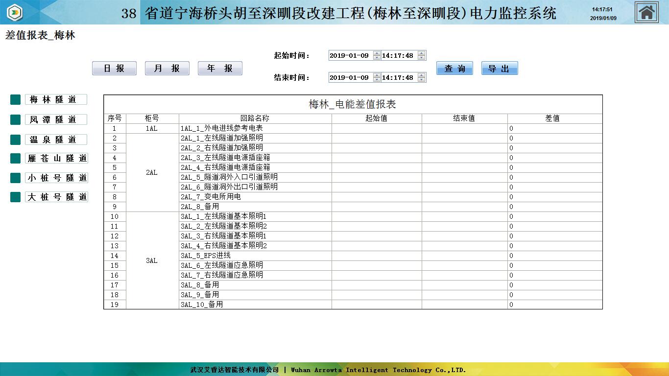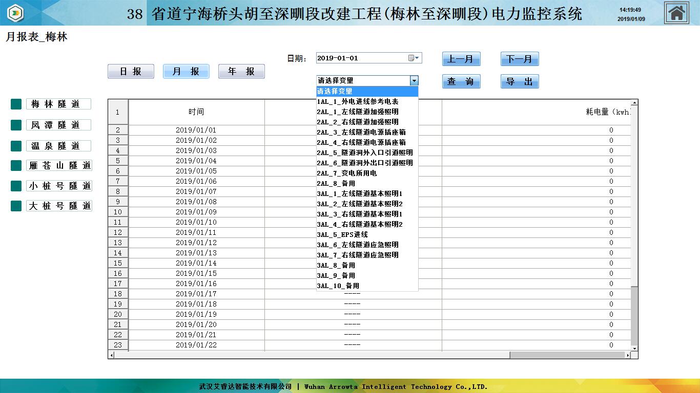 月报表,可以通过设定日期,以及楼层回路来查询当月每天的抄表值和耗电量。以月为周期,查询日期设定起始时间为每个月的1号。(截止时间为30/31)