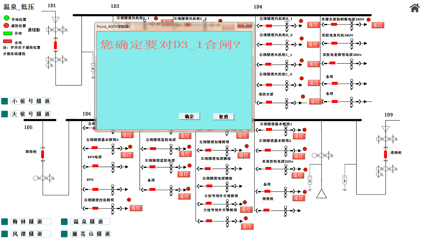 整个项目包括桐盘山大小桩号,温泉,雁苍山,梅林,凤潭六个部分, 共计240块多功能仪表,12块干式变压器,6个直流屏,6个EPS,6个ATS,6个FEPS,18块综保