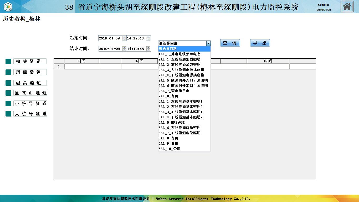 历史报表按区域划分子项,点击进入之后,可以勾选需要查询的对象,设置查询日期,即可查询历史数据,并可以导出到excel作为数据分析的依据。