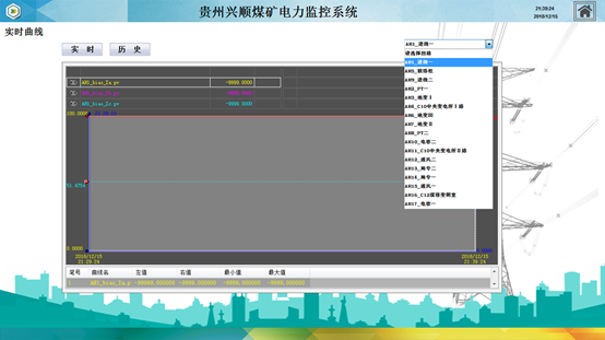 实时曲线按区域划分子项,点击进入之后,,一般根据曲线表格右上方的选择框内选择需要查询的回路,即可显示所选对象的实时数据。曲线下端是数据分析,查看时需要将表格上拉。