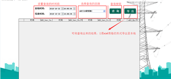 历史查询是通过设置查询时间,选择需要查询的回路,可以将时间段内该回路的数据查询出来。以table表、按接线回路方式呈现,清晰、直观的监测仪表完整显示系统设备的某一时间段监测信息,历史信息。