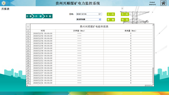 月报表,可以通过设定日期,以及楼层回路来查询当月每天的抄表值和耗电量。以月为周期,查询日期建议设定起始时间为每个月的1号。(截止时间为30/31)