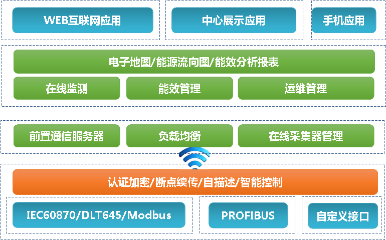 第四层以上为政府管理层(地市、省、国家),其将各地上报数据分类处理,按照国家能源管理政策要求,实施数据化管理并为制定新的能源管理政策提供依据