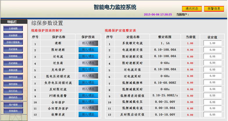 参数设置是针对继电保护设备、光伏逆变器,仪表的越限报警参数等进行参数的设定,可以采用多套定值的方式,也可以通过输入框实时修改参数等方式,在参数设置上通常为最高权限的管理员才有权修改。